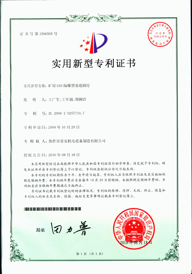 焦作景安公司始終堅持“以科技為先導(dǎo),以市場為導(dǎo)向”的發(fā)展戰(zhàn)略,不斷進行新產(chǎn)品的研制和開發(fā),在國家“六五”到“九五”期間,承擔和參與了國家多項科技攻關(guān)項目,產(chǎn)品的技術(shù)和質(zhì)量一直處于全國同行業(yè)領(lǐng)先位置。并被中國電器工業(yè)協(xié)會評定為“質(zhì)量可信產(chǎn)品”。特別是在礦用防爆燈領(lǐng)域,礦用隔爆型半導(dǎo)體(LED)照明燈具,2008年列入國家火炬計劃,獲2009年河南省工業(yè)和信息化廳的科技成果二等獎,并擁有多項國家專利。 |